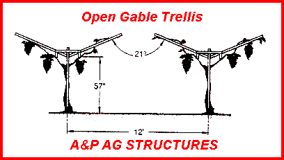Our new Open Gable combines all the advantages of our standard gable, but allows rows to be covered in plastic for rain protection and enables mechanical pruning in center.